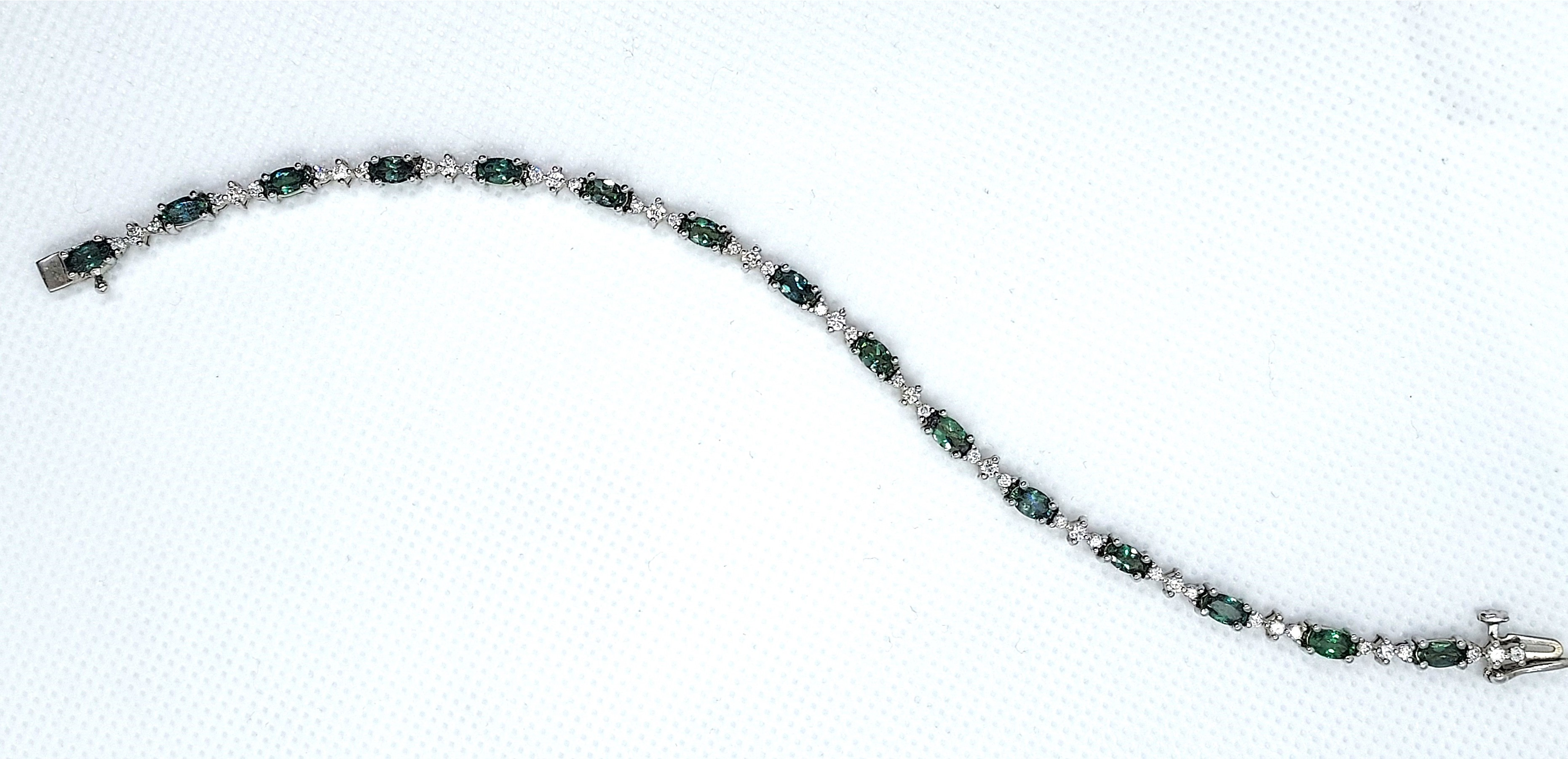 Description: a rare chrysoberyl variety with chameleon-like qualities; a lovely green in daylight or fluorescent light changing to brownish or purplish red in incandescent light.