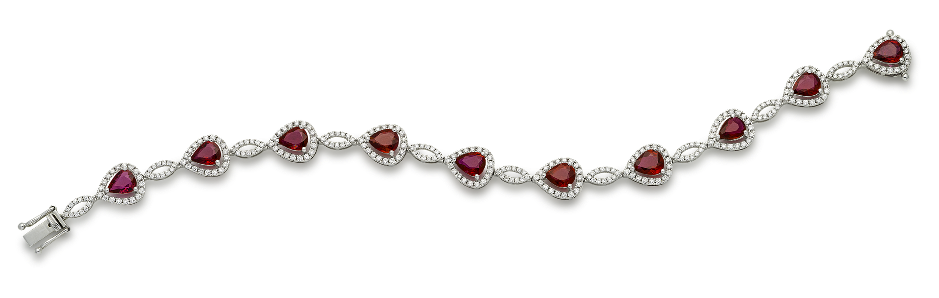 Color: It's color comes from chromium and has a color range from a deep cochineal-red to pale rose-red, purplish-red, and orangey-red. Ruby’s pleochroism is a strong orangey-red or a purplish-red. Today, the most sought-after color of ruby is a medium or medium dark vivid red.